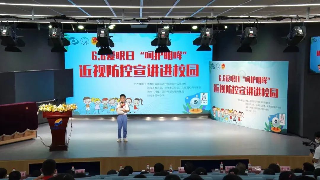 2022年6月6日是第27個(gè)全國“愛眼日”,我院聯(lián)合博鰲樂城國際醫(yī)療旅游先行區(qū)管理局、瓊海市教育局、瓊海市衛(wèi)健委、共青團(tuán)瓊海市市委在瓊海市第一小學(xué)(南堀校區(qū))舉辦了6?6愛眼日系列活動(dòng)之近視防控科普講座進(jìn)校園。本次活動(dòng)得到了相關(guān)部門的大力支持,特邀博鰲樂城國際醫(yī)療旅游先行區(qū)副局長呂小蕾、瓊海市政府李熙副市長、教育部全國綜合防控兒童青少年近視專家宣講團(tuán)團(tuán)長、溫州醫(yī)科大學(xué)眼視光醫(yī)院集團(tuán)總院長瞿佳、教育部全國綜合防控兒童青少年近視專家宣講團(tuán)專家成員、溫州醫(yī)科大學(xué)附屬眼視光醫(yī)院副院長陳蔚、瓊海市教育局林怡君副局長、瓊海市衛(wèi)健委彭時(shí)興主任、共青團(tuán)瓊海市市委肖穎鵬書記、瓊海市第一小學(xué)校長許志堅(jiān)、等眾嘉賓出席。