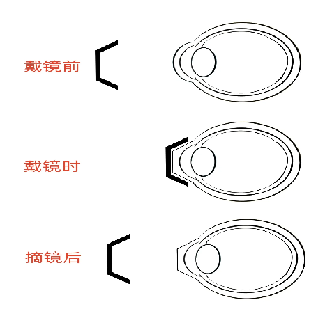 首先,讓我們了解一下OK鏡的工作原理。眾所周知,角膜是有曲率的,值在43D左右,相當于一塊高度數(shù)的遠視鏡片。OK鏡是通過鏡片、眼瞼和淚液共同對角膜產(chǎn)生下壓作用,改變角膜曲率從而改善近視。它的原理是把角膜中央?yún)^(qū)的區(qū)域變扁平,相當于矯正了近視,同時它會在角膜的旁中心的區(qū)域形成一個離焦環(huán),這個離焦保護環(huán)讓近視度數(shù)長得緩慢一些。用戶在晚上睡覺時佩戴OK鏡,白天不需要鏡片,就可以擁有清晰的視力。
